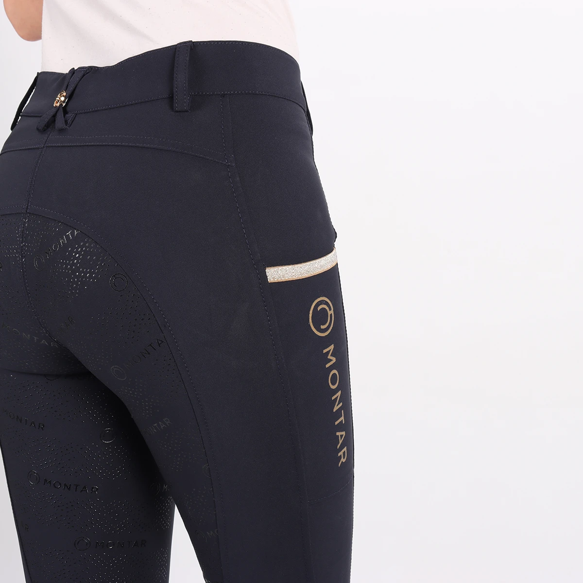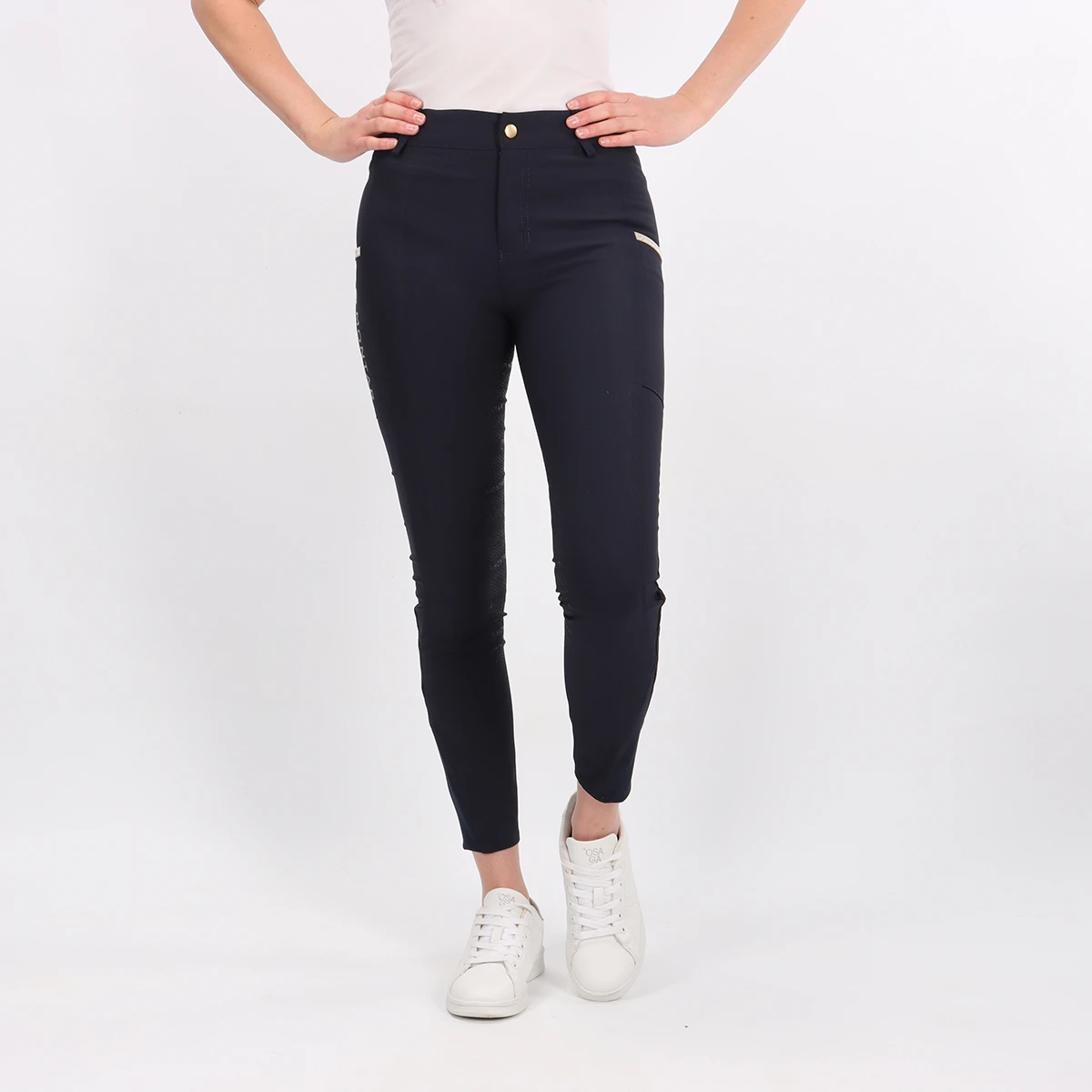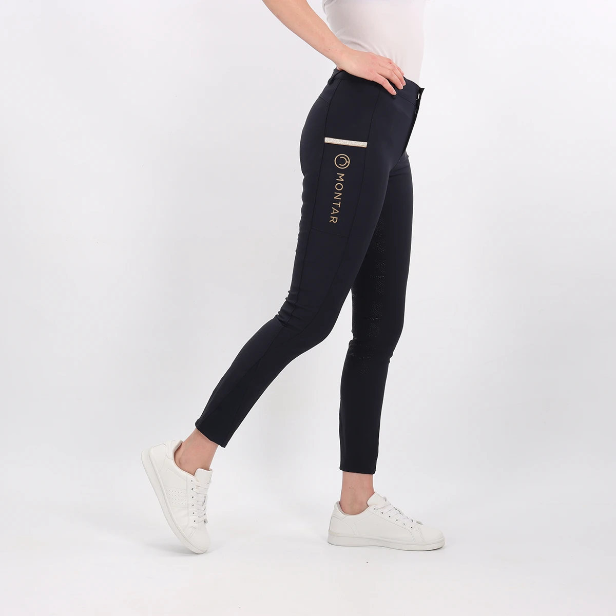 - phone pocket op het rechterbeen met luxe goudkleurige details