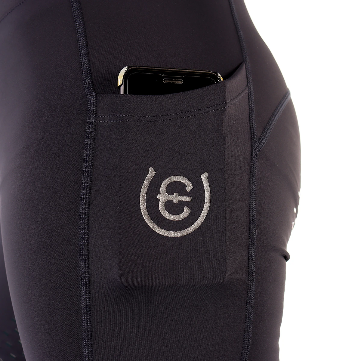 - gedecoreerd met Equestrian Stockholm details op de linkerzak en de tailleband